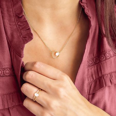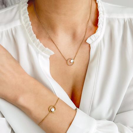 Collier acier doré avec nacre réglable de 40 à 45 cm