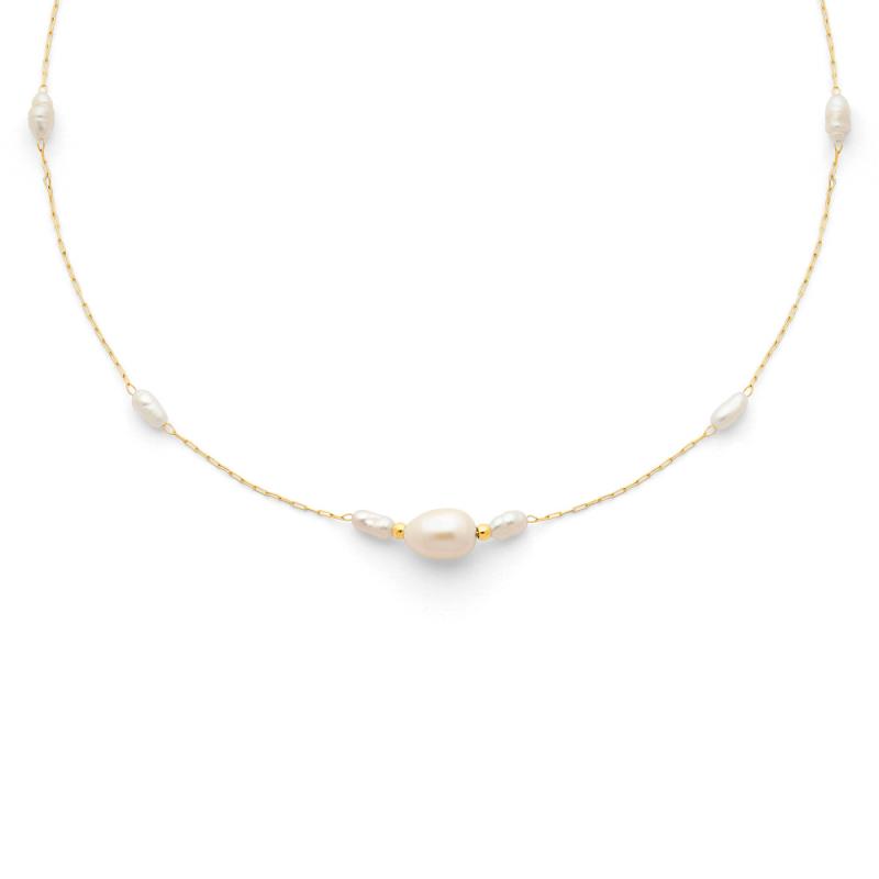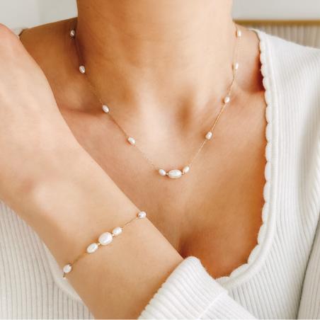 Collier acier doré avec perles de culture réglable de 40 à 45 cm