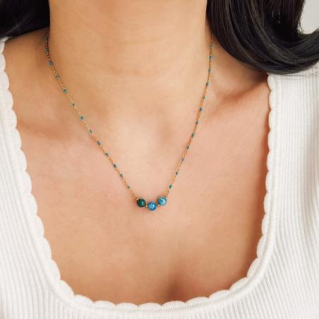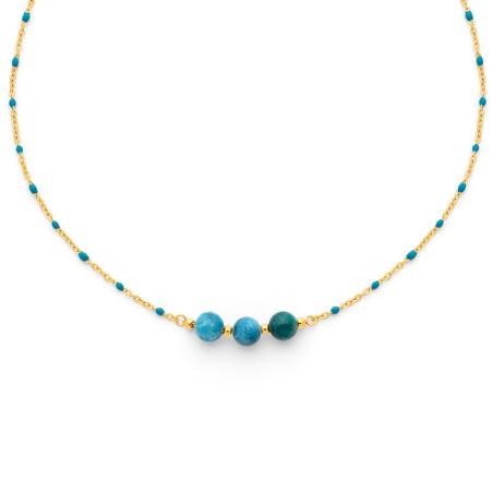 Collier acier doré avec apatite et émail réglable de 40 à 45 cm