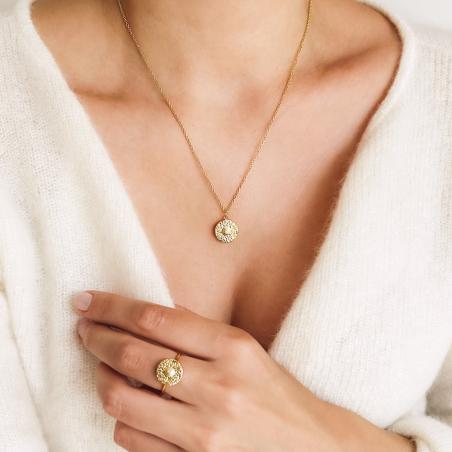 Collier acier doré avec cristal réglable de 40 à 45 cm