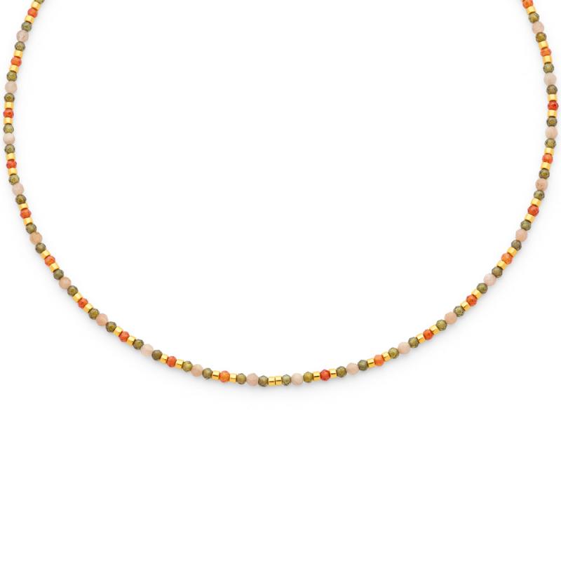 Collier acier doré,pierre de soleil et zirconias réglable 40 à 45 cm