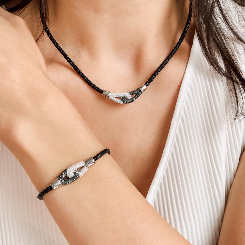Optez pour un cadeau tendance et original en misant sur ce collier en cuir. Le motif central en acier et cristal ne vous laissera pas indifférent. Résistant et agréable à porter, grâce à une longueur réglable de 40 à 45 cm, c’est l’accessoire mode indispensable pour un rendu parfait.