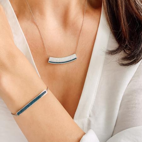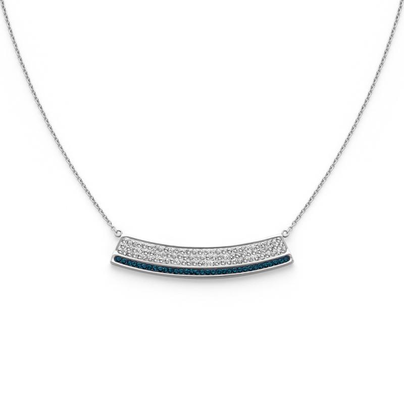 Habillez votre décolleté d'un bijou étincelant avec ce collier de la collection Ondine. Le collier en acier inoxydable arbore une plaque pavée de pierres de cristal blanc et bleu scintillantes. Sa fine chaîne en maille saura marquer votre féminité. En fonction de vos tenues, jouez sur la longueur du collier puisque celle-ci est réglable de 42 à 47 cm.