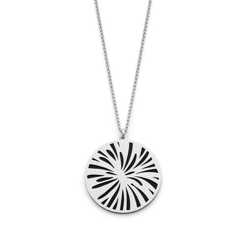 Attirez tous les regards avec ce collier sautoir en acier de la collection Evening. La chaîne est complétée d'un pendentif rond avec un motif sur fond noir en imitation cuir. L'association de l'acier et de l'imitation cuir est parfaitement réussie et offre un ensemble rock-glamour. Vous pouvez régler sa longueur selon vos besoins, de 70 à 75 cm.