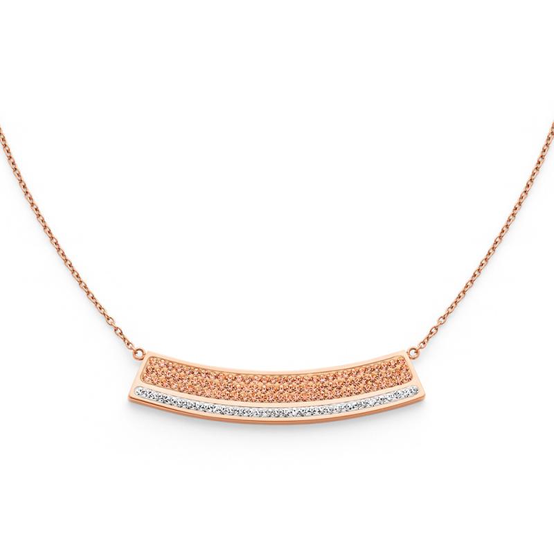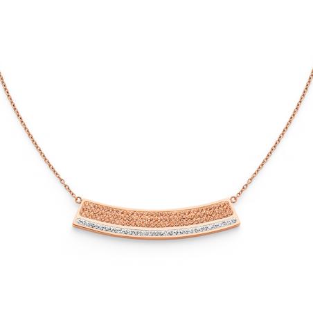 Hors du commun ce collier en acier rose avec cristal saura se faire remarquer. Son motif central légèrement arrondi épousera parfaitement votre cou. Le cristal serti vous illuminera. Ce collier de la collection Ondine avec sa chaîne aux petites mailles rondes est réglable de 40 à 45 cm.