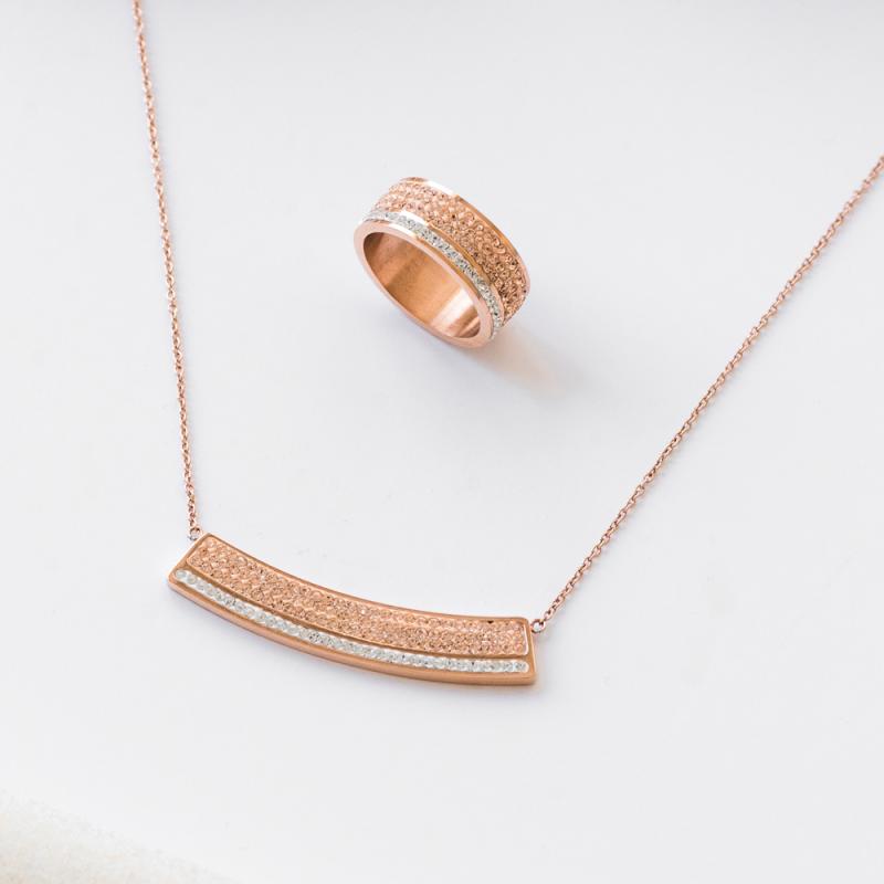 Collier acier rose avec cristal réglable de 40 à 45 cm