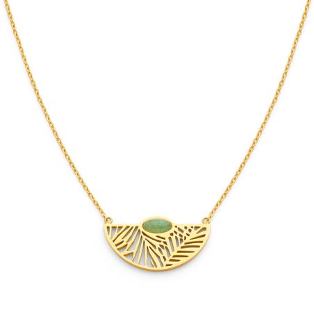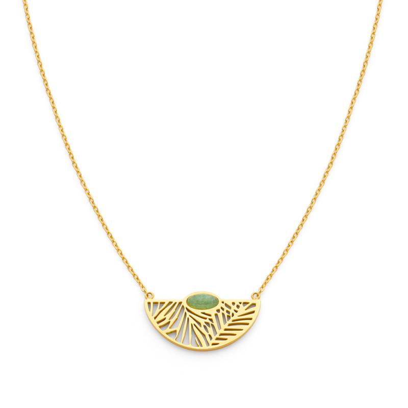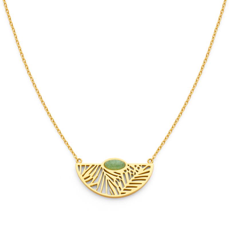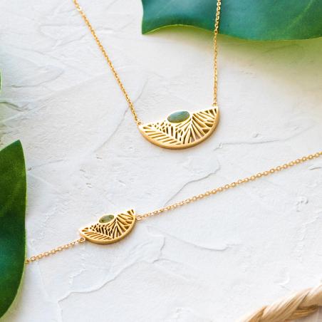 Collier acier doré avec aventurine verte réglable de 40 à 45 cm