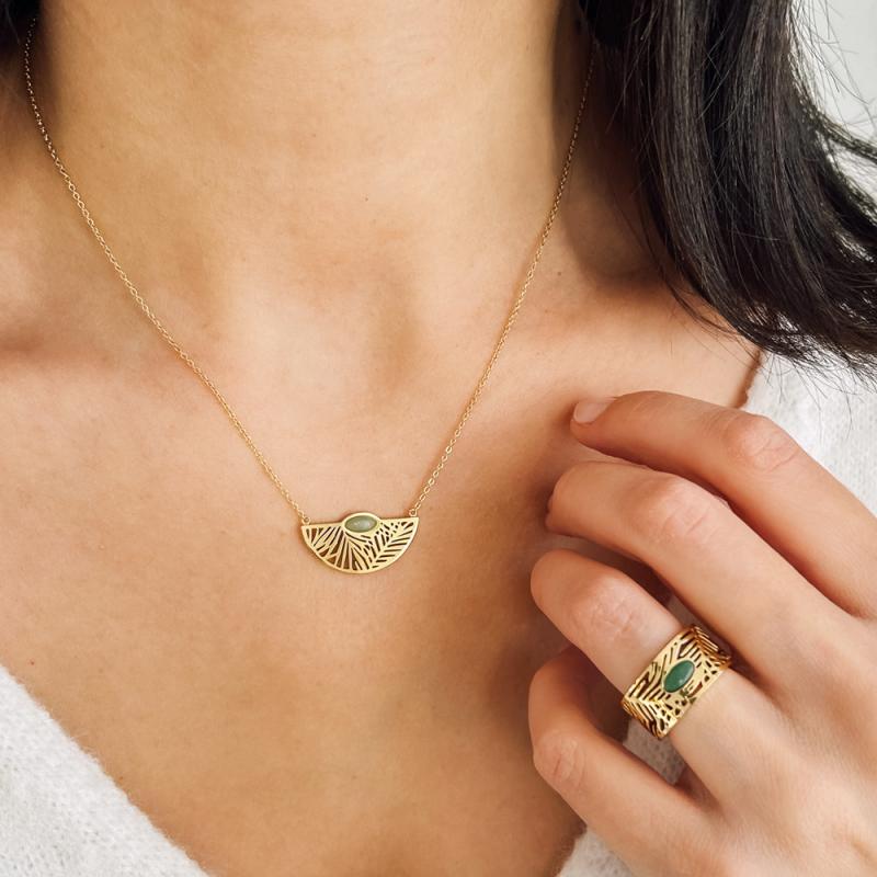 Démarquez-vous avec simplicité en portant ce collier en acier doré de la collection Savannah. Le pendentif à l'esprit aventurier est rehaussé d'une aventurine de couleur verte qui vous permettra de rester positive toute la journée. Vous pouvez ajuster sa longueur en fonction de l'effet recherché, de 40 à 45 cm.