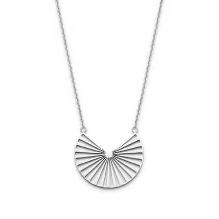 Joli travail de pliage pour ce collier en acier. En effet, le pendentif laisse penser à un éventail que l'on aurait nonchalamment ouvert aux trois quarts pour se rafraîchir. La chaîne de ce collier est ajustable de 40 à 45 cm pour vous permettre de l'adapter selon vos envies.