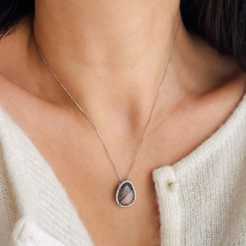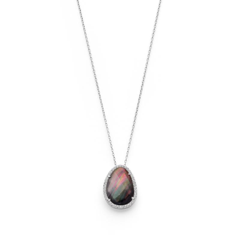 Collier argent avec nacre grise et zirconias réglable de 40 à 45 cm