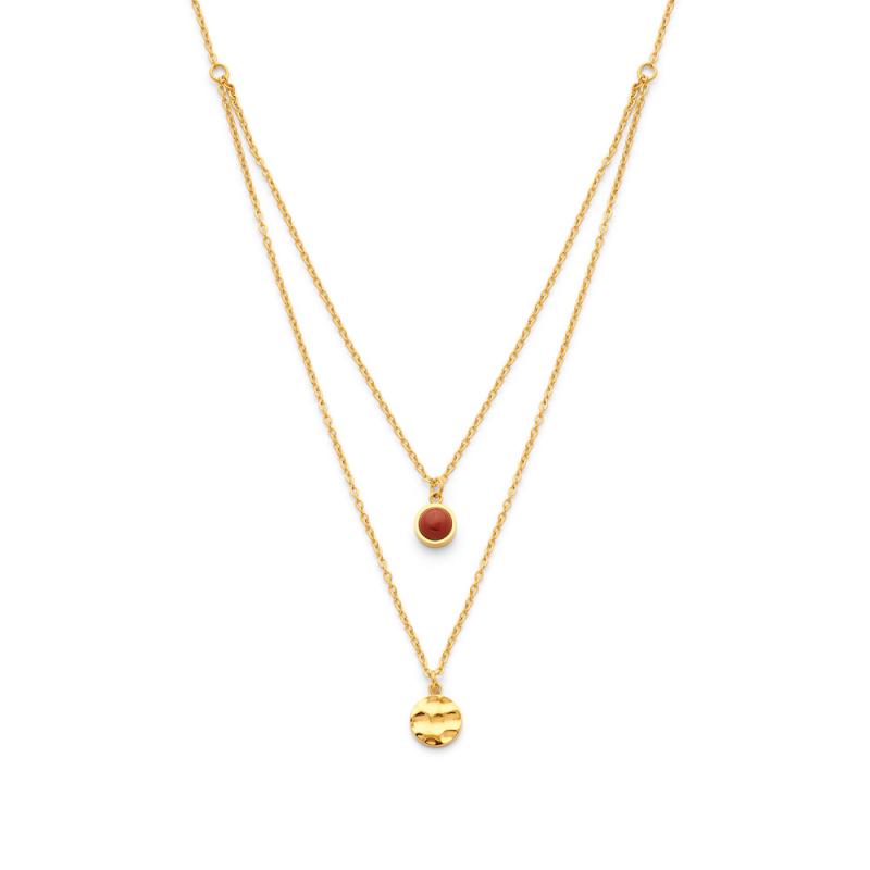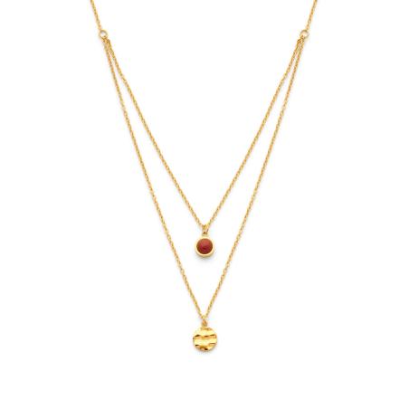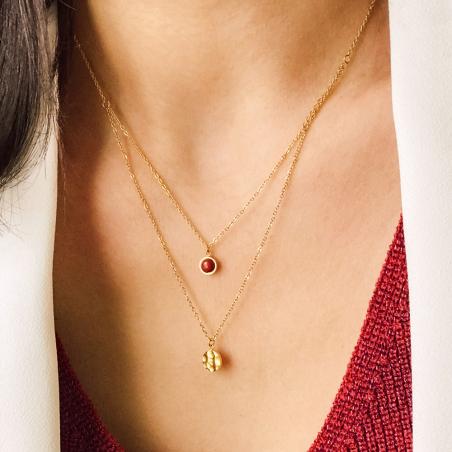 Collier double acier doré avec jaspe rouge réglable de 40 à 45 cm
