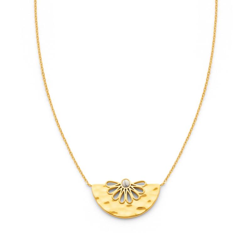 Collier acier doré avec howlite réglable de 40 à 45 cm