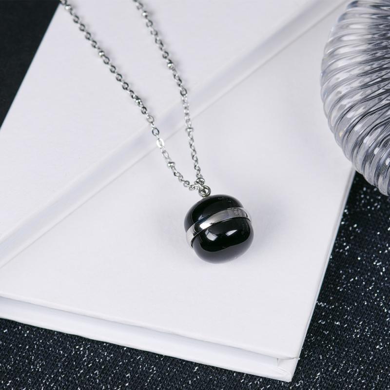 Le sautoir revient en force cette saison et se décline de multiples façons pour le bonheur de toutes celles qui suivent la mode avec attention. Sur une blouse, un pull ou une tunique, le sautoir complète une tenue à la perfection. Le sautoir en acier et agate noire de la collection Univers saura répondre aux besoins des plus exigeantes. Sa longueur peut varier de 70 à 75 cm.