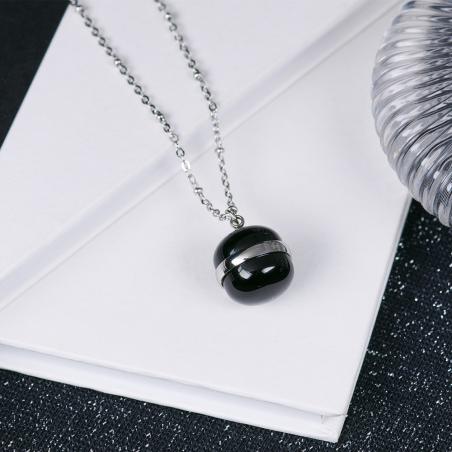 Sautoir acier avec agate noire réglable de 70 à 75 cm