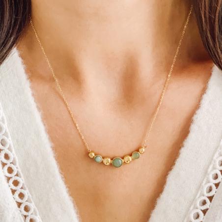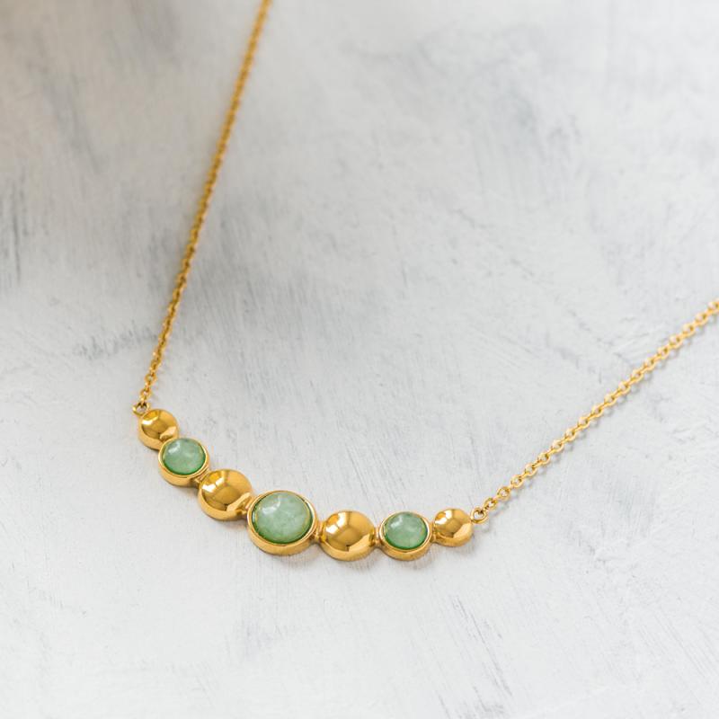 Collier acier doré avec aventurine réglable de 40 à 45 cm