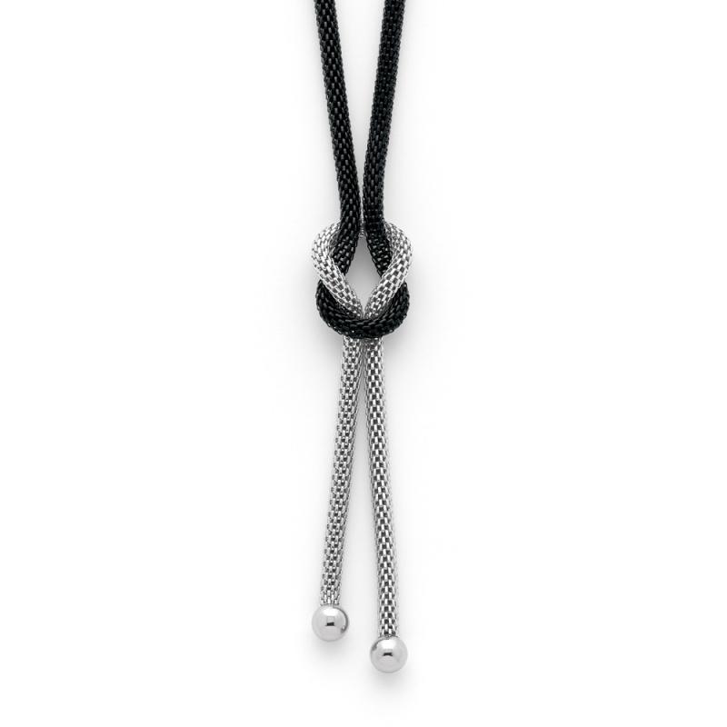 Le succès de l'association du noir et du blanc n'est plus à démontrer quel que soit le domaine. Les créateurs de bijoux s'en inspirent largement pour proposer des bijoux ultra modernes à l'image de ce collier en acier qui représente un noeud marin bicolore. Ce collier est ajustable de 47 à 52 cm.