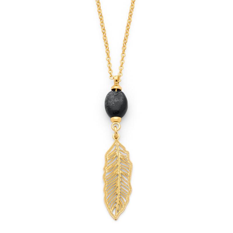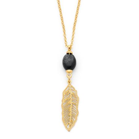Collier acier jaune avec obsidienne réglable de 40 à 45 cm