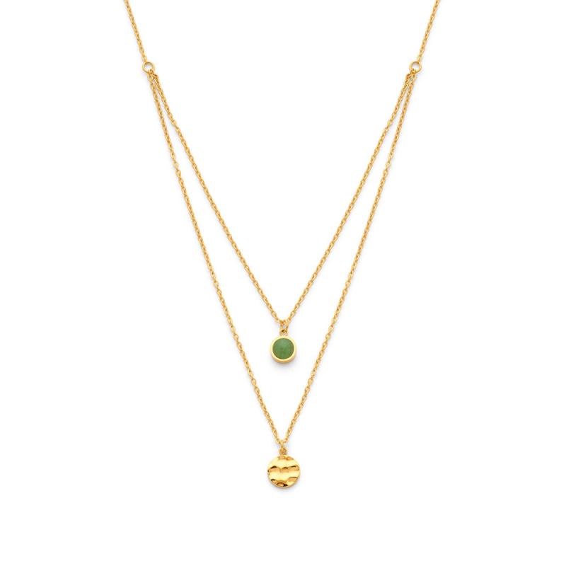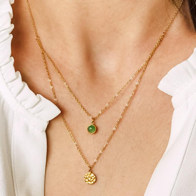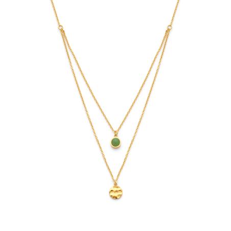 Collier double acier doré avec aventurine réglable de 40 à 45 cm