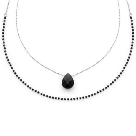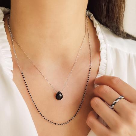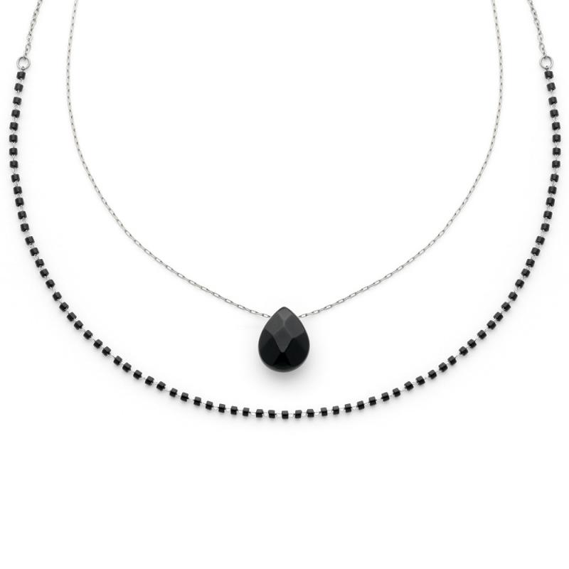 Collier double acier avec obsidienne et miyuki réglable de 40 à 45 cm