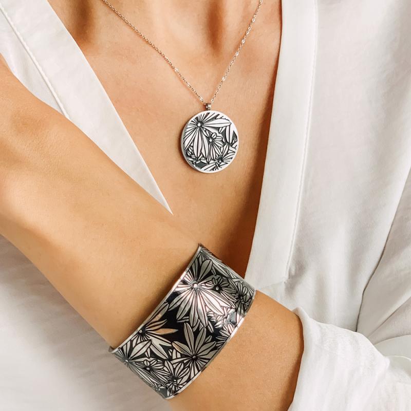 Sautoir acier avec émail réglable de 70 à 75 cm