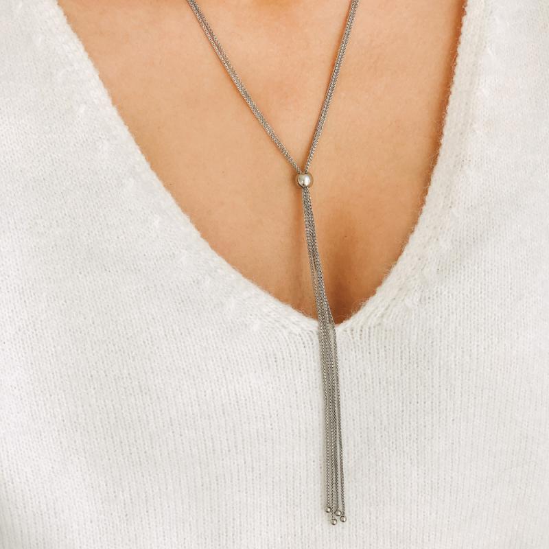 Sautoir acier avec perle coulissante ajustable 80 cm
