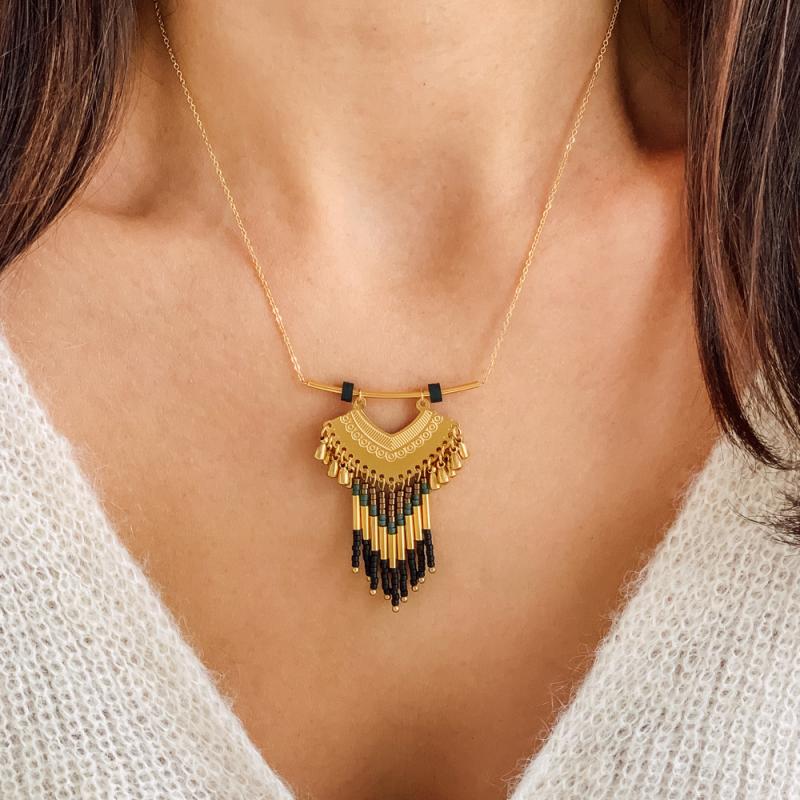 Collier acier doré avec miyuki réglable de 40 à 45 cm