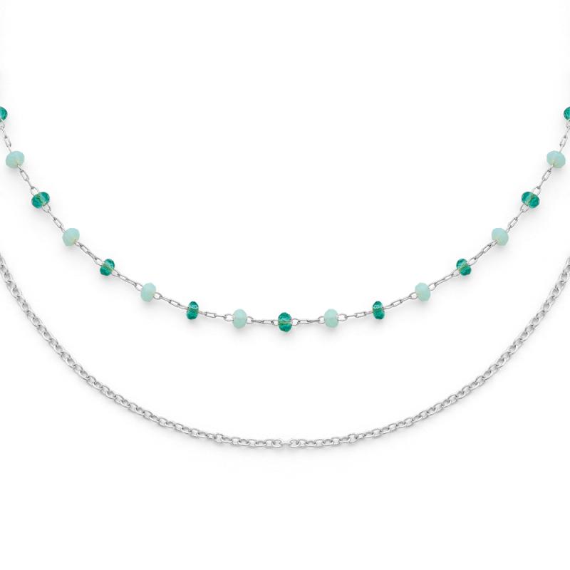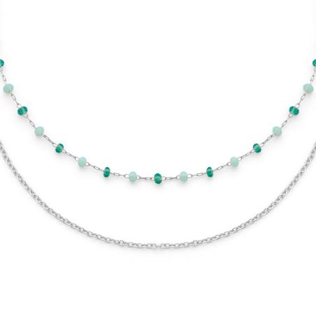 Collier double acier avec cristal réglable de 40 à 45 cm