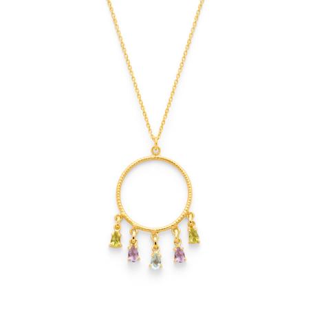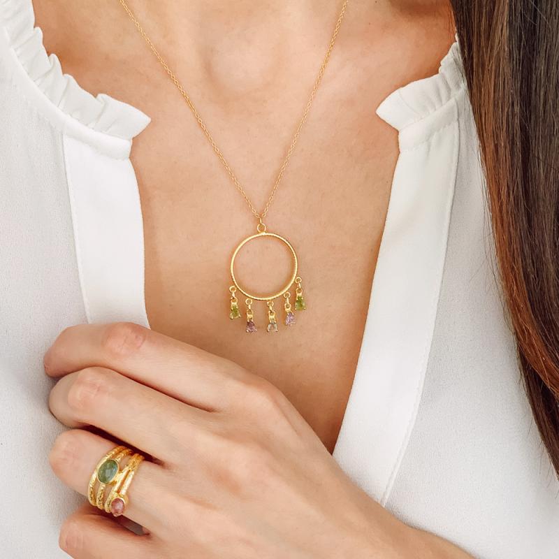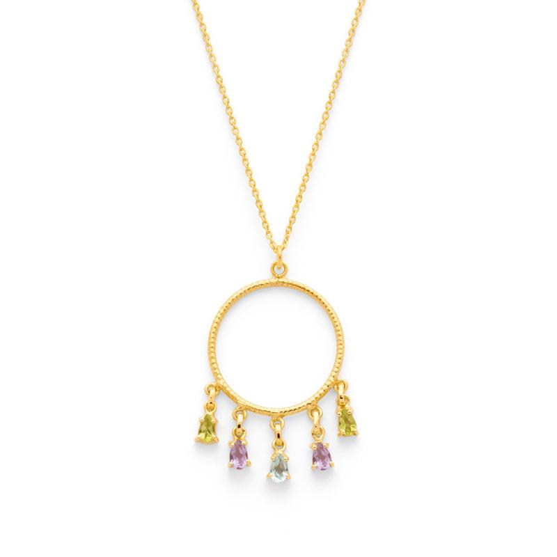 Collier doré péridot améthyste topaze bleue réglable de 40 à 45 cm
