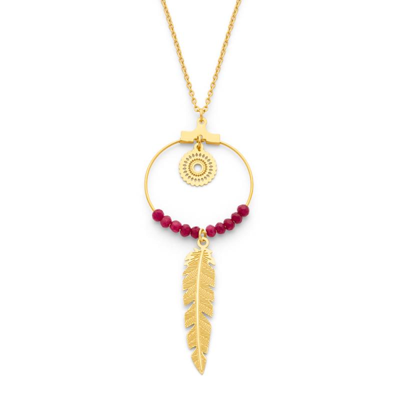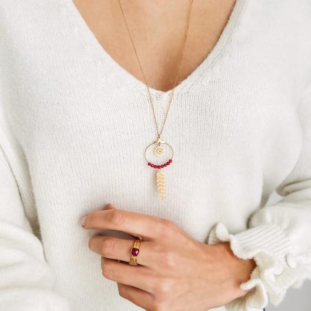 Sautoir acier doré avec jaspe rouge réglable de 70 à 75 cm