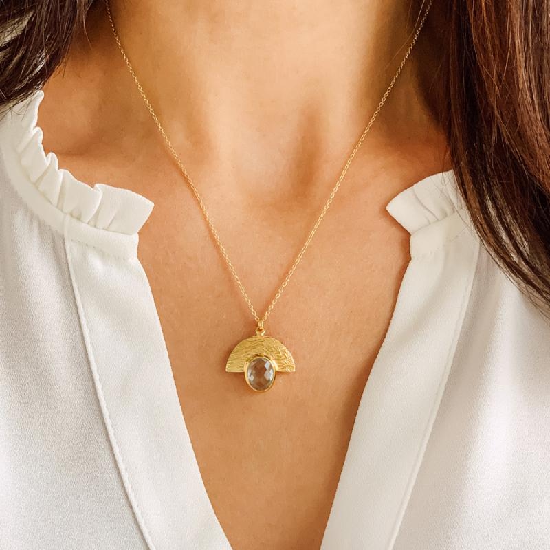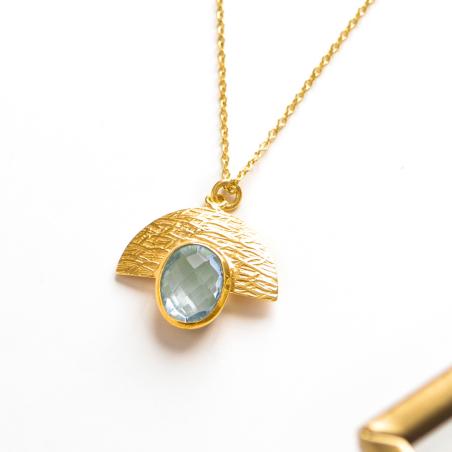 Collier doré avec topaze bleue réglable de 40 à 45 cm