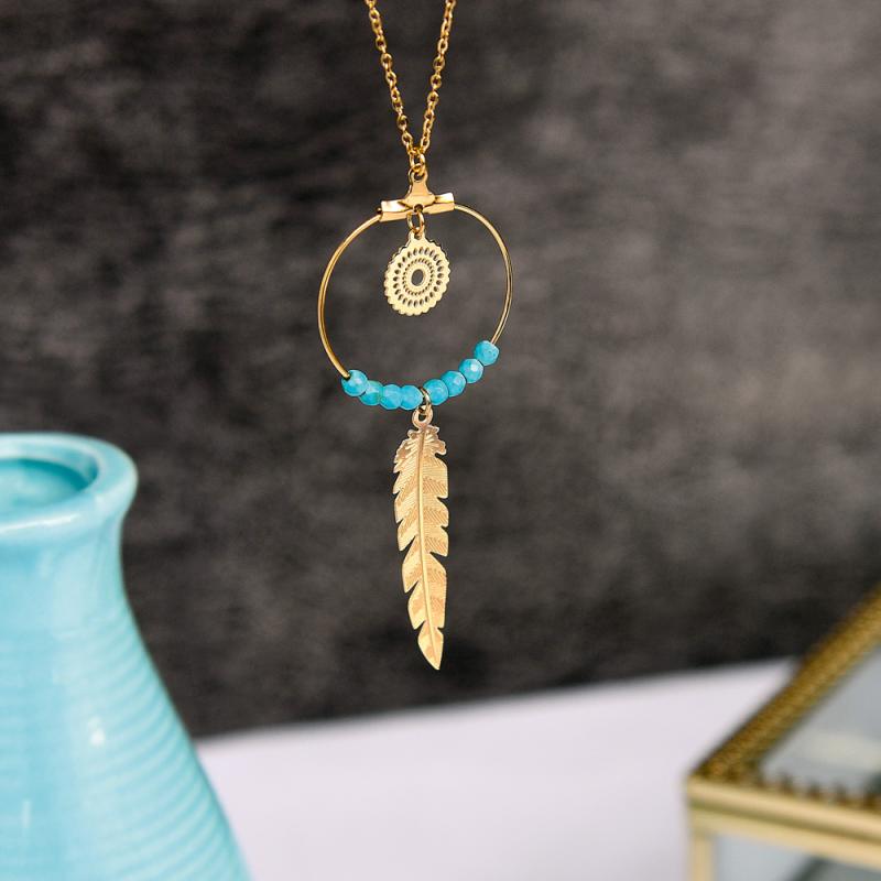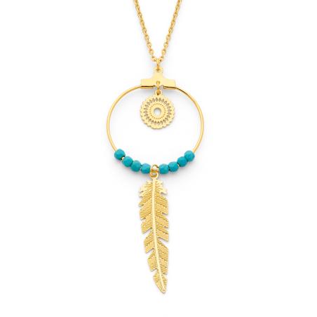 Sautoir acier doré avec turquoise reconstituée réglable de 70 à 75 cm
