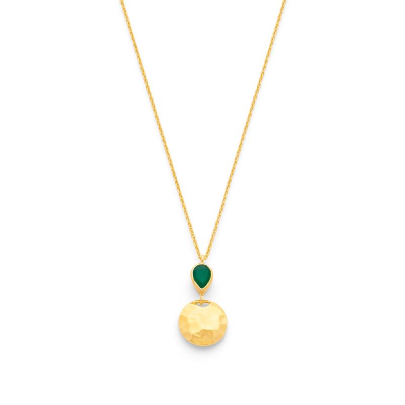 Collier doré avec onyx vert réglable de 40 à 45 cm