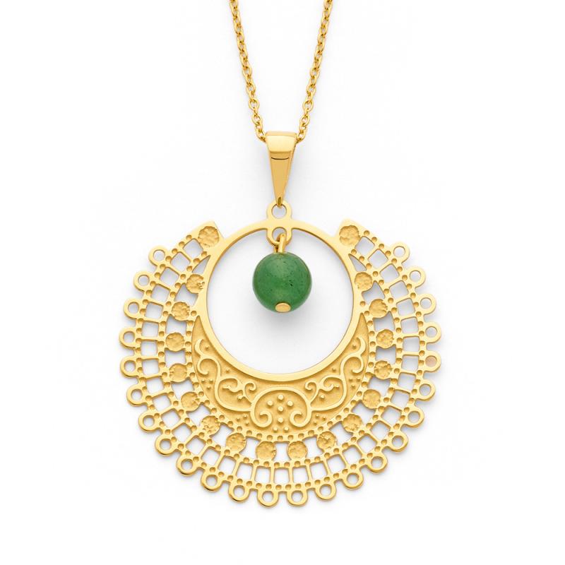 Sautoir acier doré avec aventurine réglable de 70 à 75 cm
