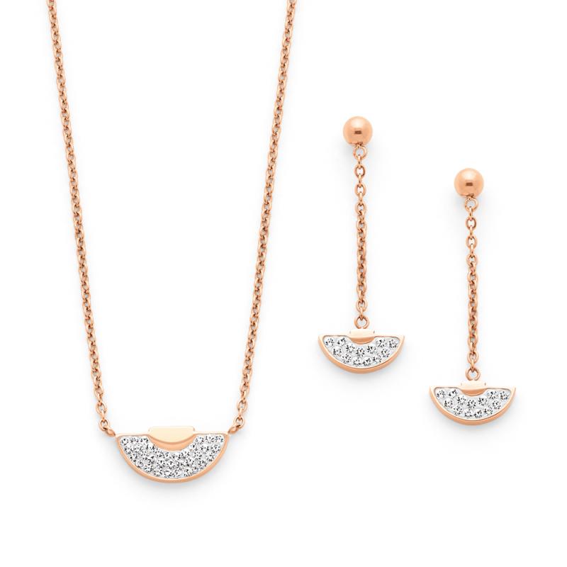 Ensemble collier et boucles d'oreilles acier rose avec cristal