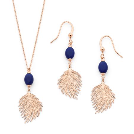 Collier et boucles d'oreilles acier rose et lapis-lazuli reconstitué