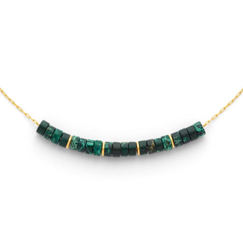 Collier acier doré avec jaspe vert réglable de 40 à 45 cm