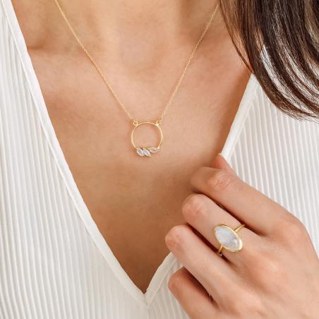 Collier doré avec pierre de lune réglable de 40 à 45 cm