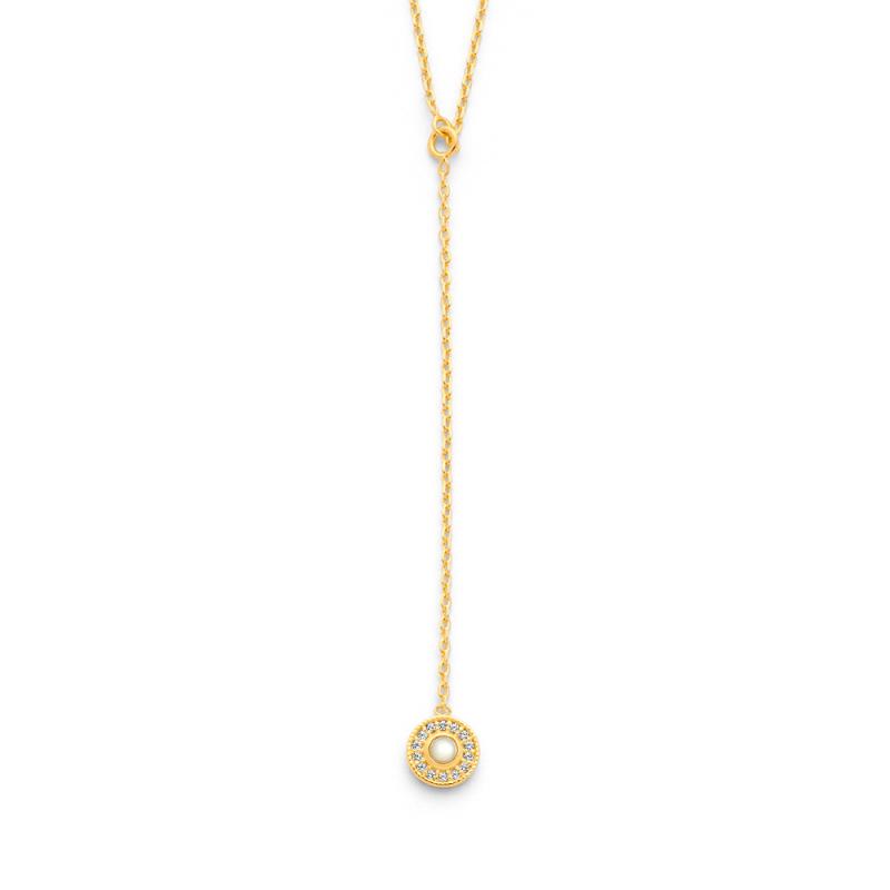 Collier doré avec zirconias et nacre réglable de 40 à 45 cm