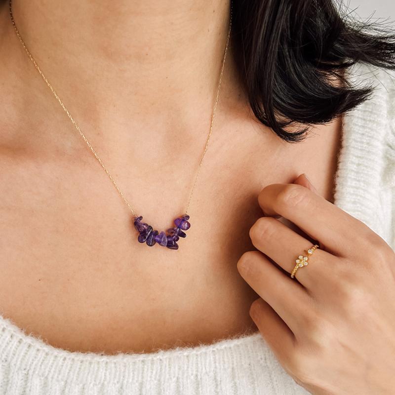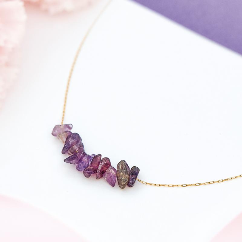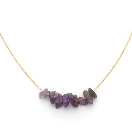 Collier acier doré avec améthyste réglable de 40 à 45 cm