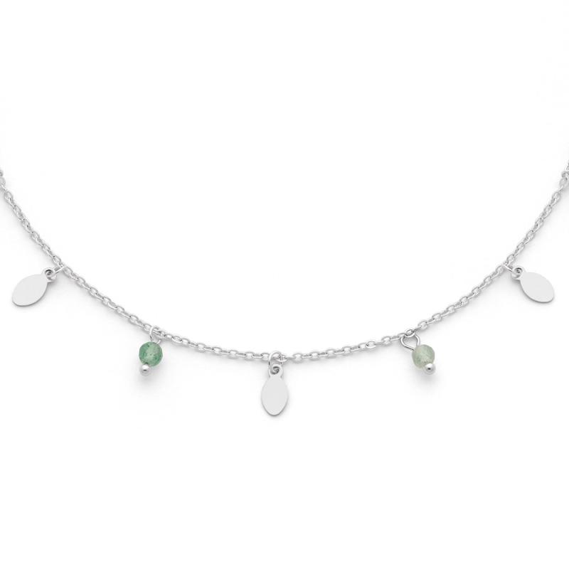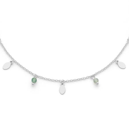 Collier acier avec aventurine réglable de 40 à 45 cm