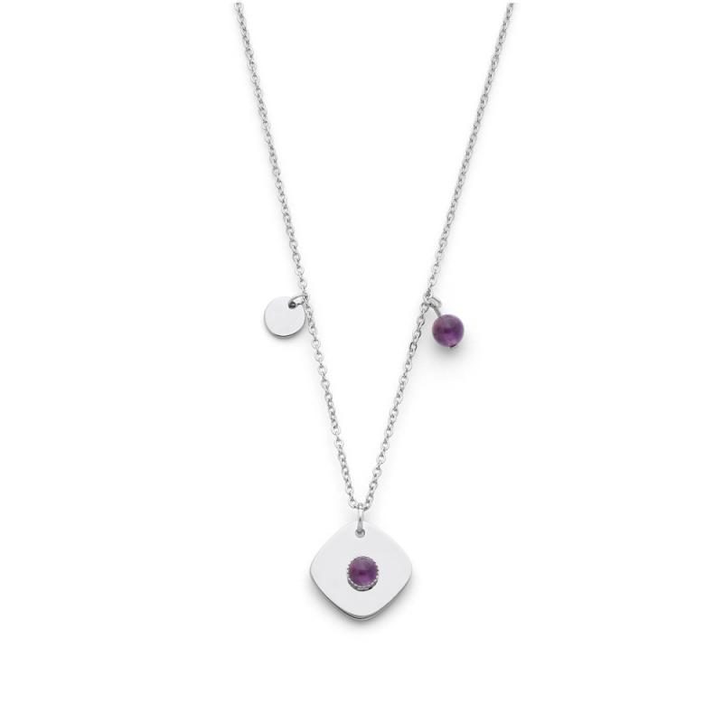 Collier acier avec améthyste réglable de 45 à 50 cm