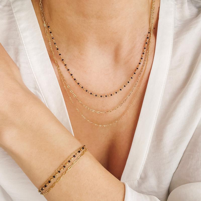 Collier triple acier doré avec miyuki réglable de 40 à 45 cm