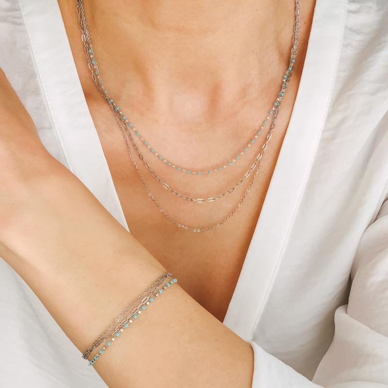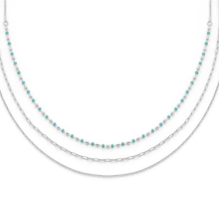 Collier triple acier avec miyuki réglable de 40 à 45 cm