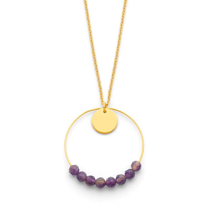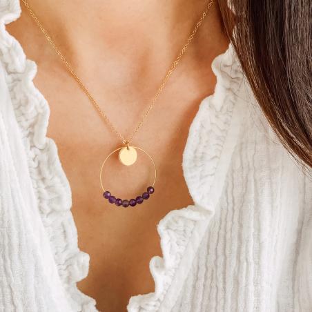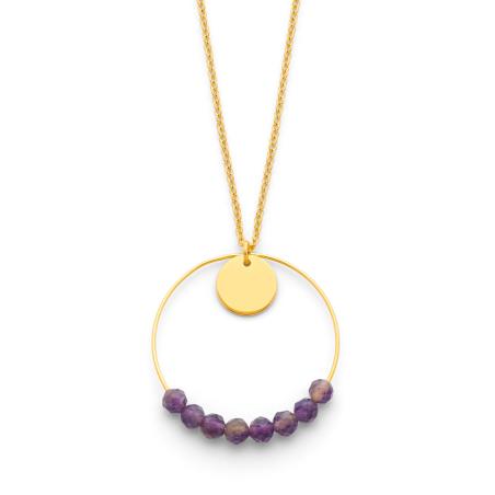 Sautoir acier doré avec améthyste réglable de 70 à 75 cm