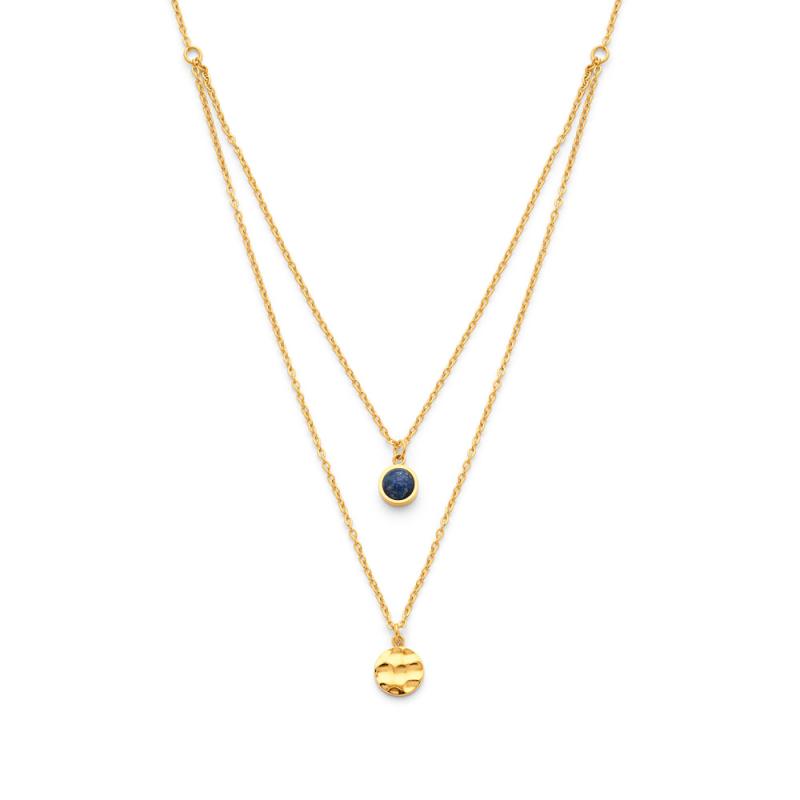 Collier double acier doré avec lapis-lazuli réglable de 40 à 45 cm