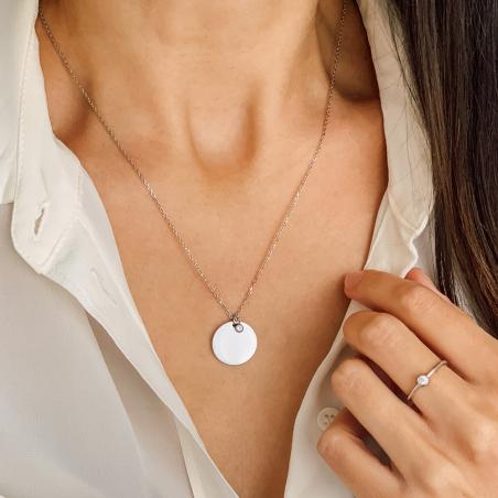 Sautoir acier avec cristal réglable de 55 à 60 cm