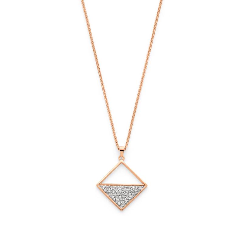 Collier dore or rose 2 tons avec zirconias reglable de 42 à 45 cm