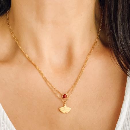 Collier double acier doré avec jaspe rouge réglable de 40 à 45 cm