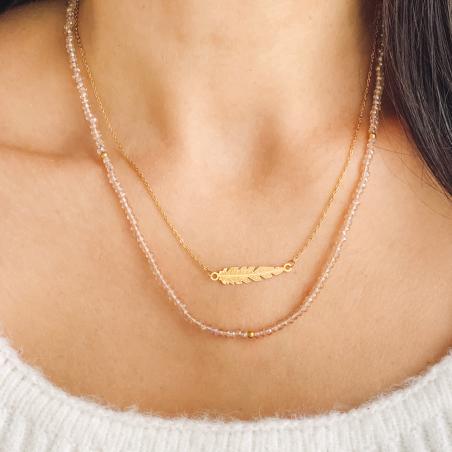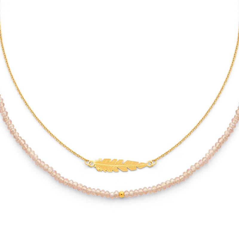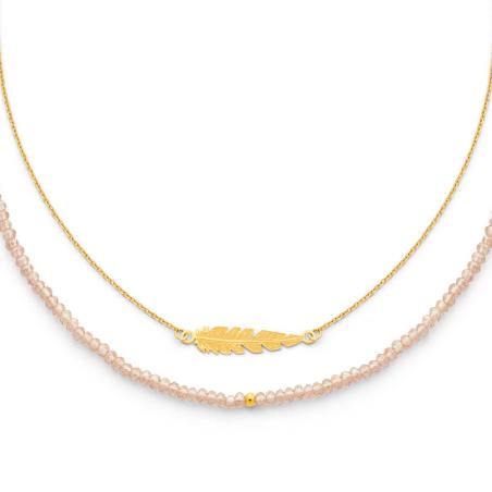 Collier double acier doré avec cristal réglable de 40 à 45 cm