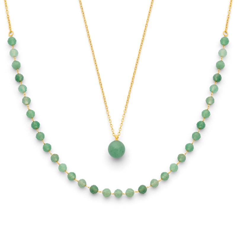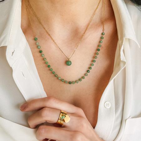 Collier acier doré avec aventurine verte réglable de 40 à 45 cm